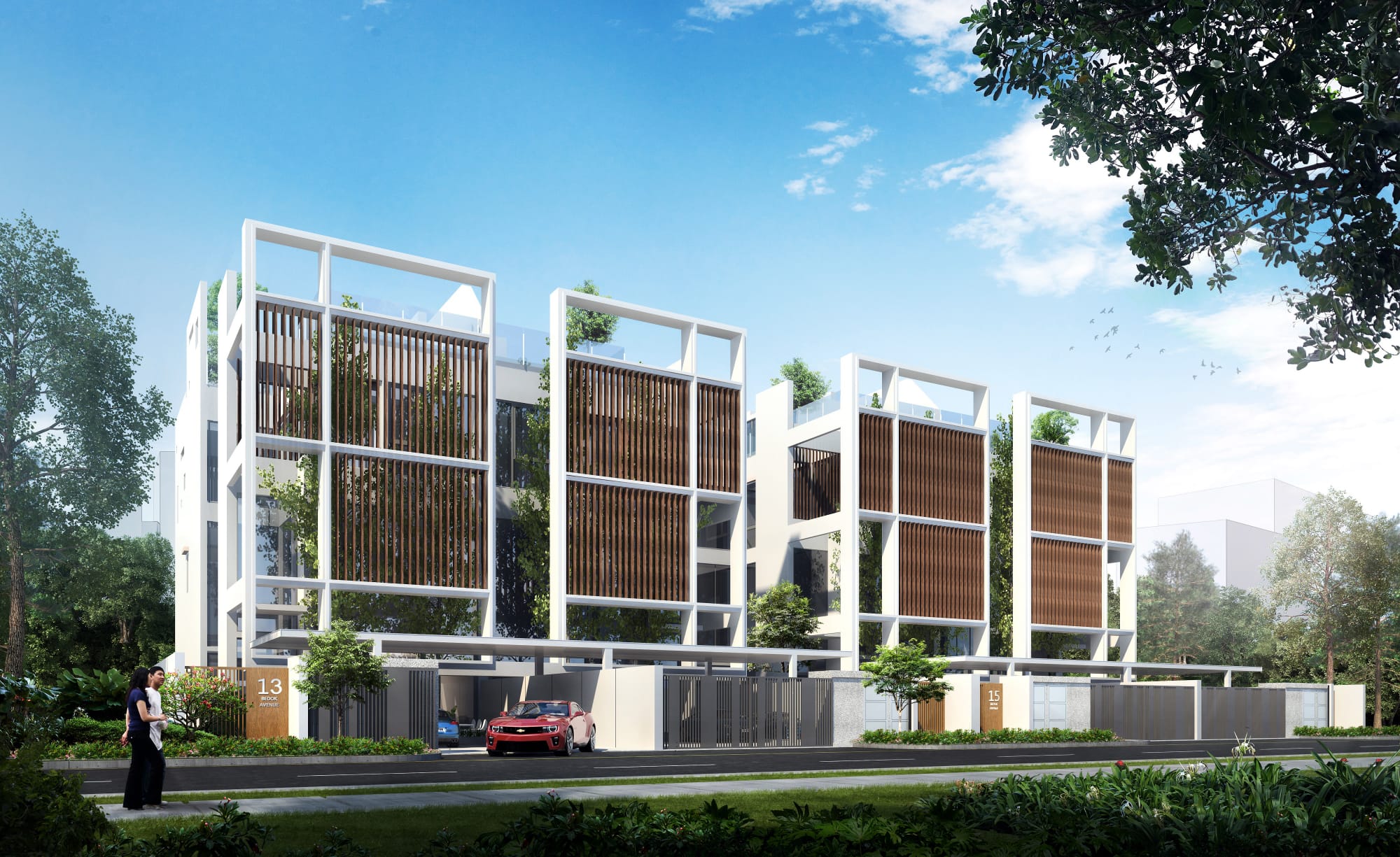 These exclusive semi-detached houses are located near the East Coast of Singapore and are ideally situated on a private and residential street, with easy access to the airport, major expressways, and other suburban areas.