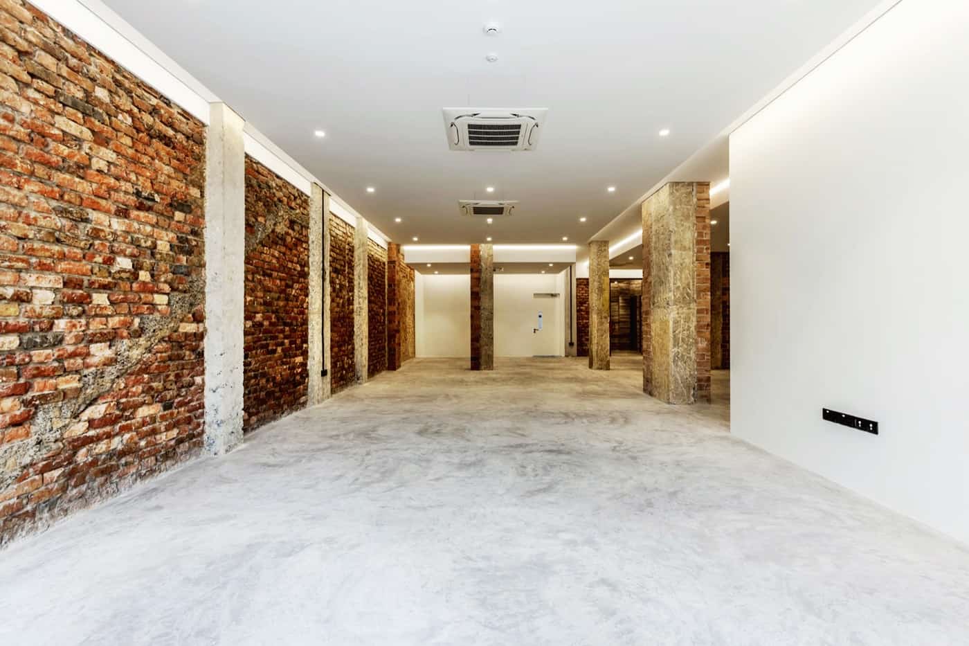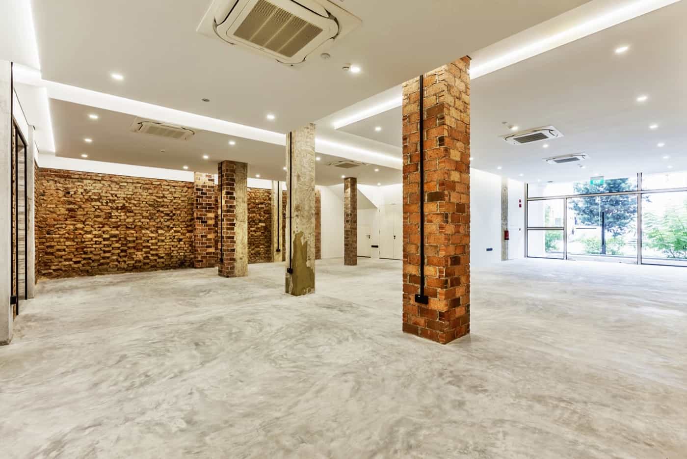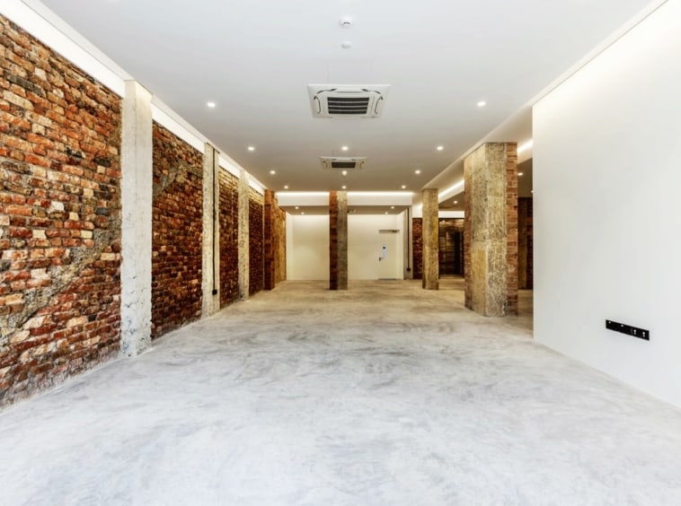Row of shop house – nice looking facade (bricks and painted white) units and interior space